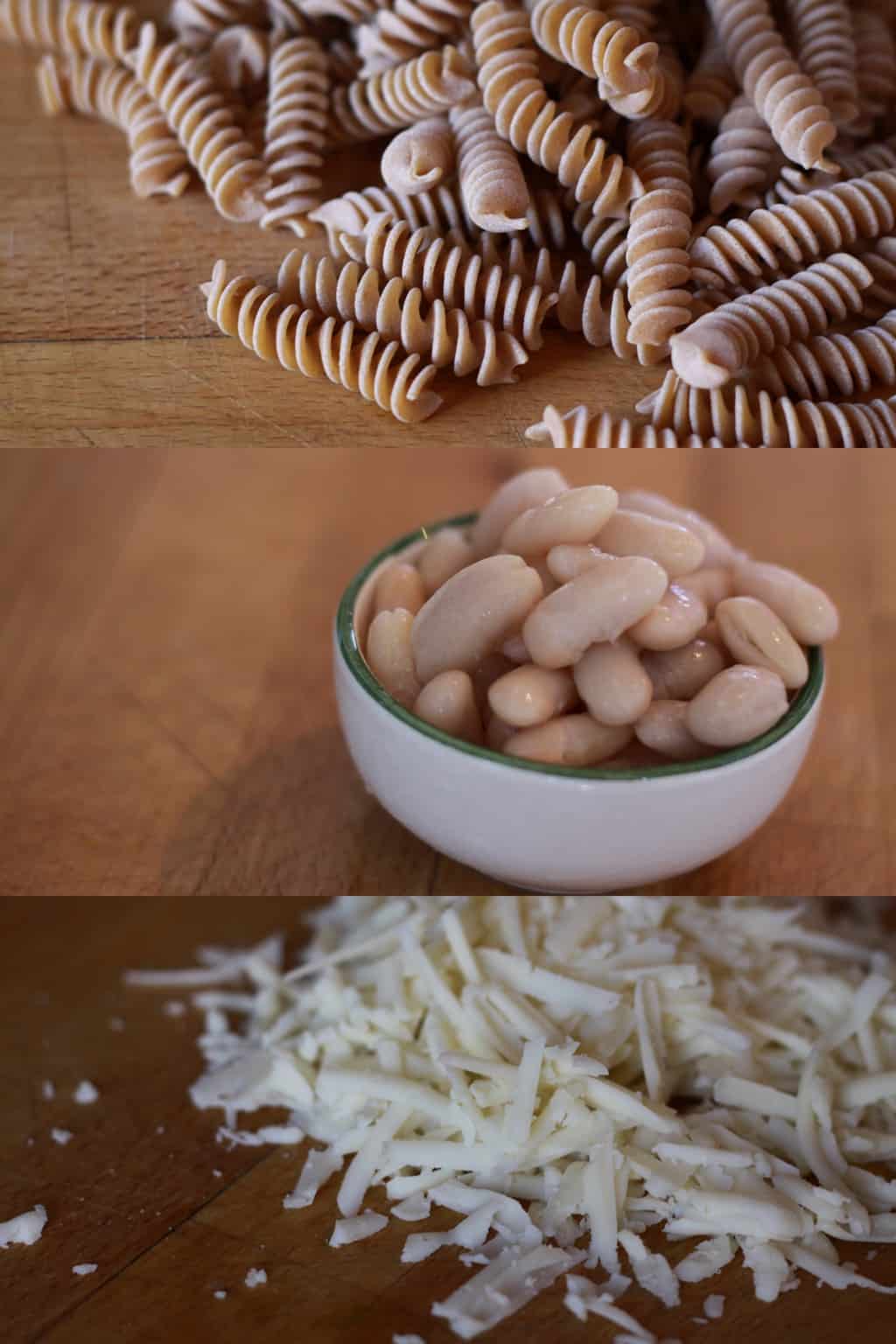 Short pasta noodles such as elbows work best but if you can’t find the right shape in a whole wheat variety, just break them before cooking or cut them afterward.