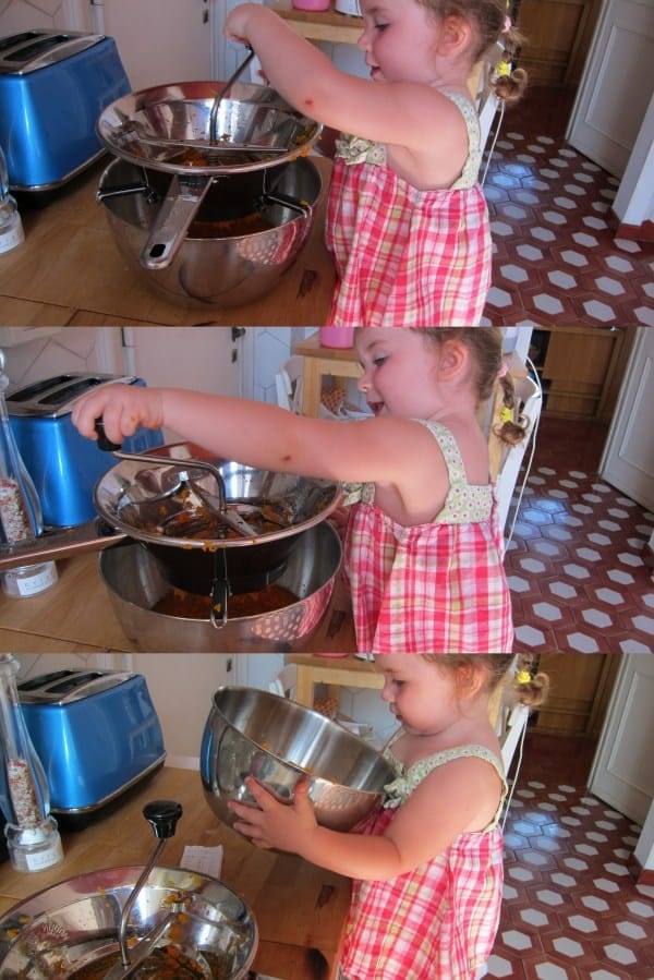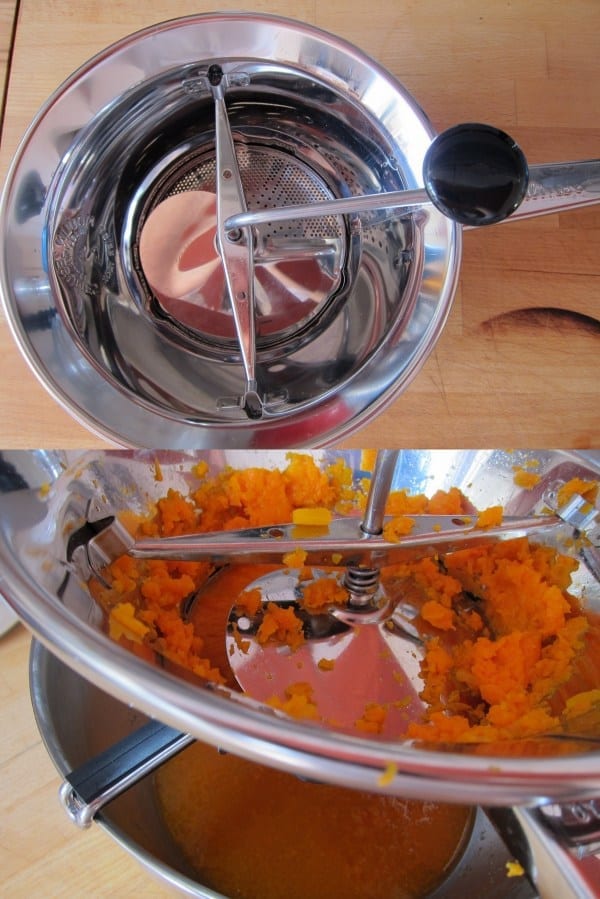 Then we threw the whole mess into my handy new food mill. There are several things that I love about this contraption:
