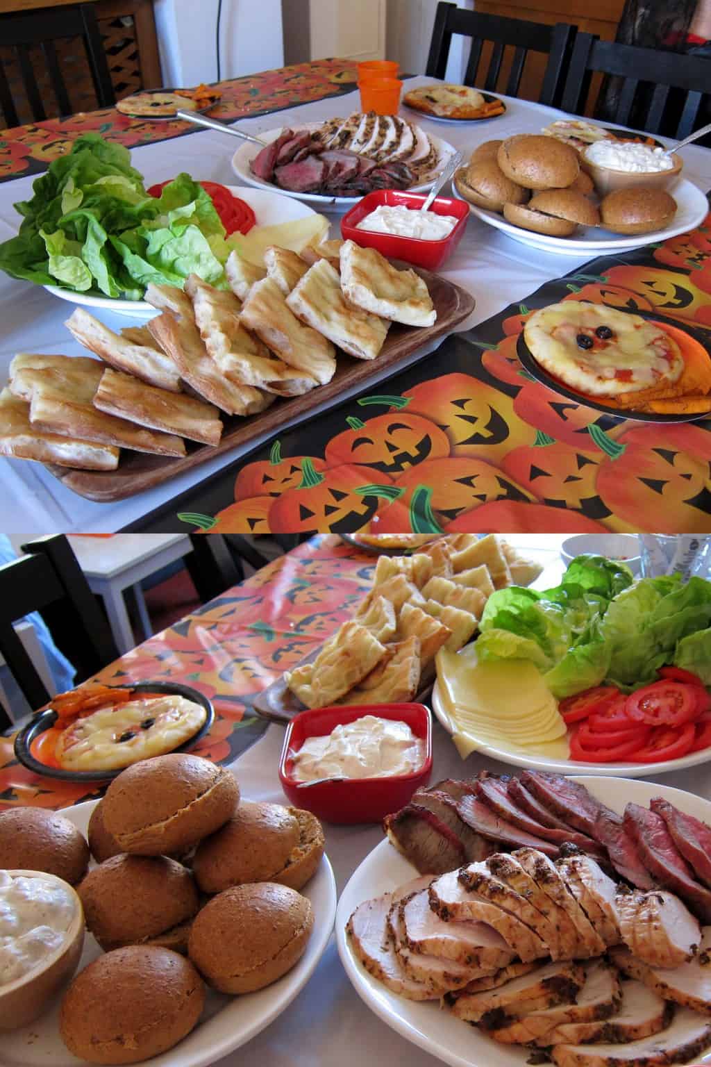 I’m not going to say that the mummy pizzas were a big hit. That’s because they weren’t. Each kiddie got an individual pizza with two olive eyes and cheese strips arranged in mummy fashion. Most took one look at the olives and wrote off the entire thing. Serves me right. The oldest member of the pizza eating group was six. They have no idea what mummies are, they just saw something they didn’t like perched on top of an otherwise average looking lunch. Ho-hum…