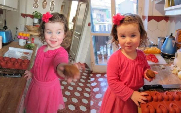 It worked so well I haven’t missed that can of pumpkin–the one my mom mailed to me from the US–ever since. Packed with vitamins and beta carotene these muffins were so moist and full of flavor you’d never know they’re “good for you”. Even Estelle eats them (sans the frosting) which is thrilling if for only one reason: one breakfast works for everyone. This one’s a keeper.
