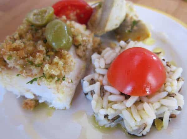 I NEED A NEW CATEGORY, called Partial Failures. That’s how I’d describe this dish but it’s not what you think. Phoebe is a sworn rice hater and carefully molding her portion of wild rice into the shape of a flower (using a cookie cutter and allowing it to set in the fridge overnight) made absolutely no difference. In fact, she spit out each bite that included even one grain. (Cue mom’s sigh, eye roll and “absolutely not” three-in-one move.) She’s like the Princess and the Pea this one, except her talent is detecting rice. And with terrible table manners. The fish itself however, was a huge hit. Especially with lemon and olives. Even Estelle liked it.