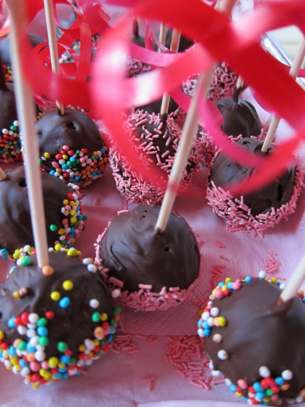 Before I go any further though, I need to come clean about something. Until a few months ago, I’d never heard of cake pops. Never. In my defense, I’m positive such things aren’t in vogue in Rome the way they seem to be at home (where I just saw them for sale in the Starbucks drive-thru for $1.50 a pop.) So, when I saw cake pop photos from the birthday party my friend Amber threw for her daughter I did what any Type A, post-corporate career mom does, I Googled them and watched a how-to video on YouTube. Sufficed to say, if I were a better mom more experienced in all things cake pops, I would’ve made these. As it is, I made these and here’s how it went…