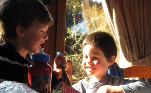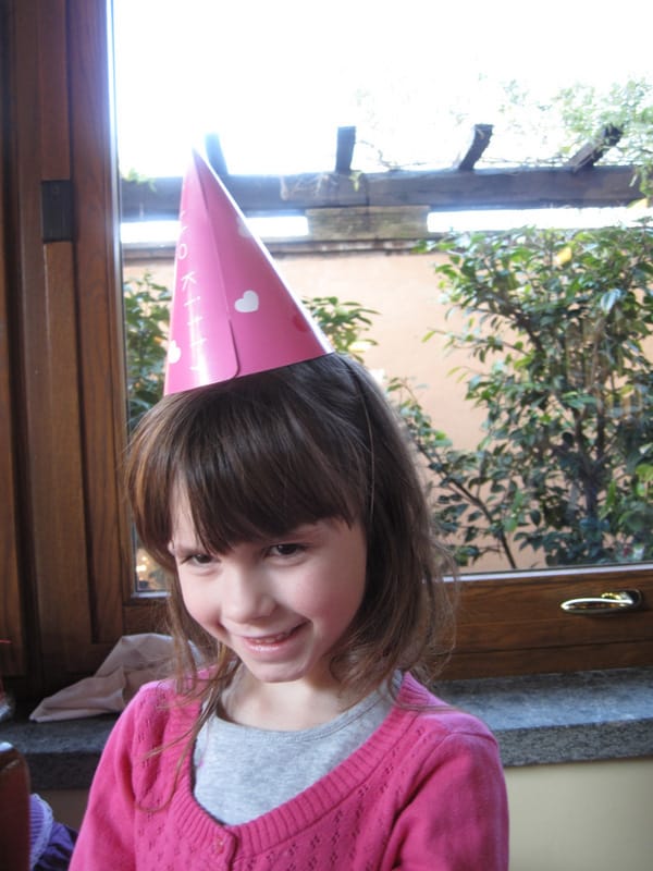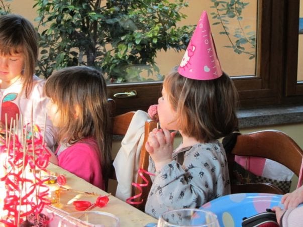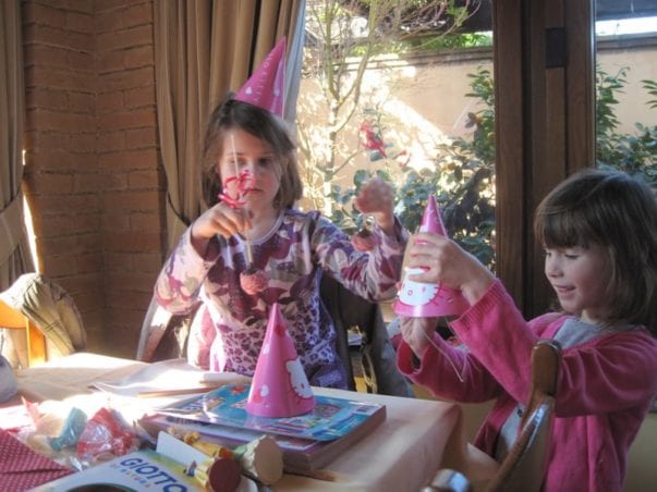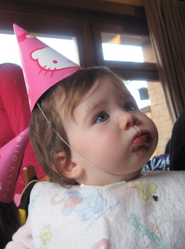 Click through the slideshow for step-by-step instructions, including low-sugar frosting. [nggallery id=13] Phoebe helped. Then we took our show on the road. A three-family restaurant lunch was already in the works so we supplied the party hats, noise makers and dessert.