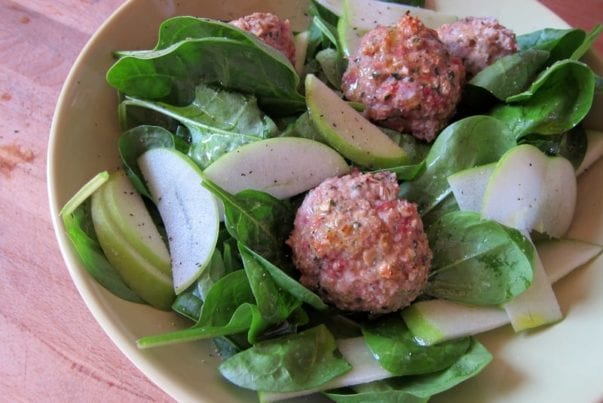 Best of all, these meatballs were a delicious spinach and apple salad for mom’s lunch the next day.