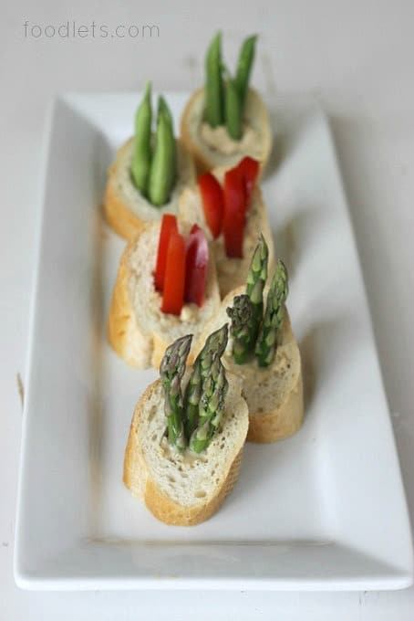 - Baby carrots, sugar snap peas, sliced cucumbers and bell peppers